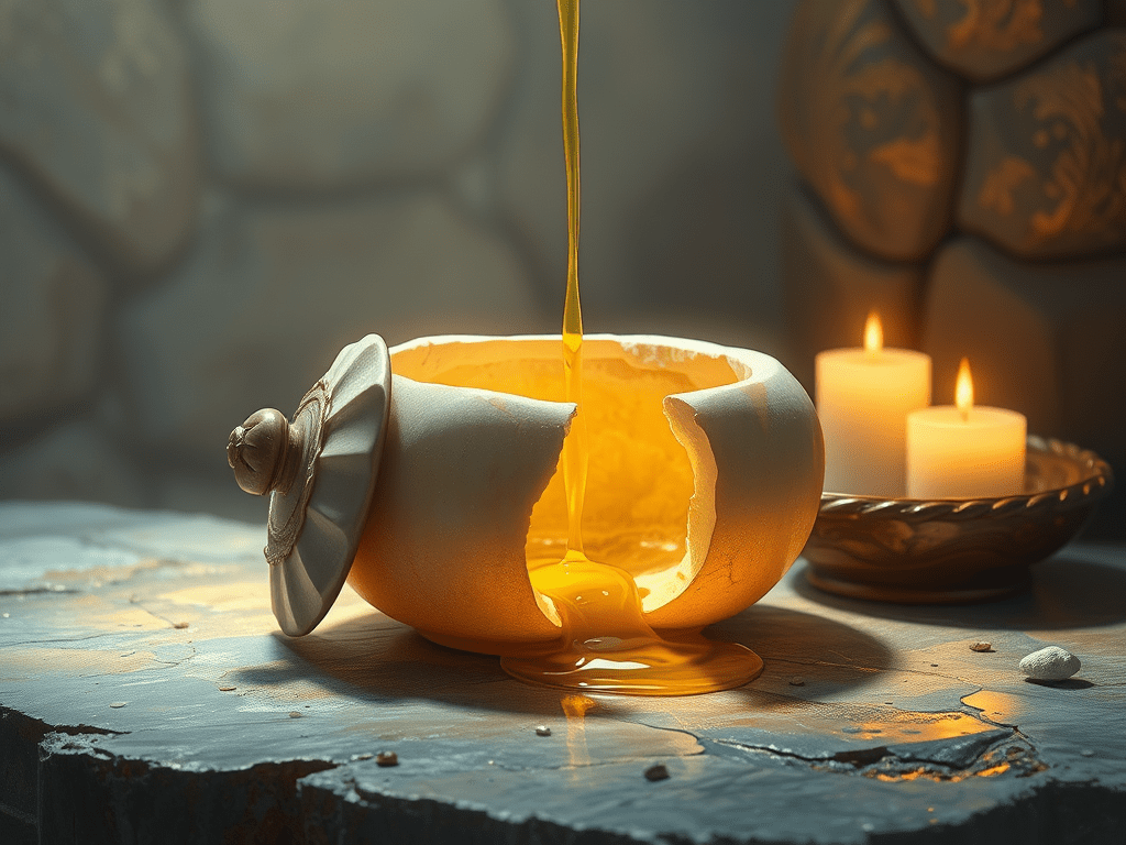 It is in the imitation of Christ that we are the alabaster jar. The oil is the grace of God poured into us at Baptism, strengthened and renewed at this altar, given not to be kept, but to be poured out so that others may live.
